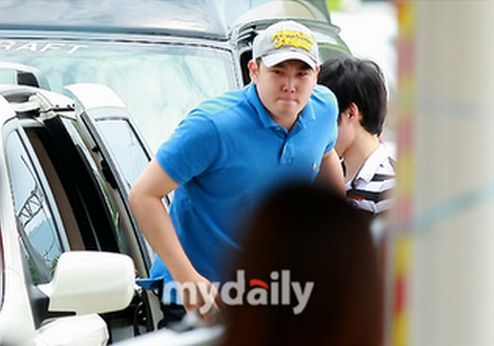 Around 1.15pm (KST), Kangin and the other SuJu members arrived. Kangin and several of his bandmates were seen shedding tears for their impending separation.